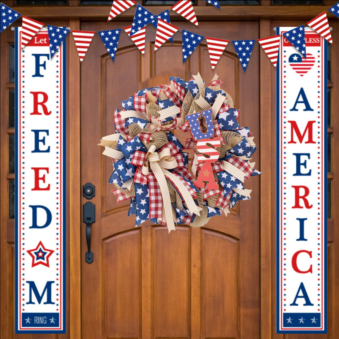 豪貝の新型の独立日の装飾用品の赤と青の前のドアの花輪は家の農舎の廊下の花輪を掛けて飾ります。