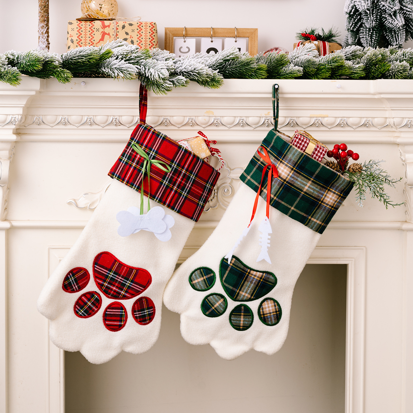 豪貝クロスボーダー新作クリスマス装飾用品犬爪靴下漫画猫骨プレゼント靴下格子プレゼント袋