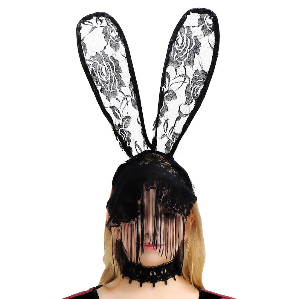 ハロウィーンcos化粧舞踏会成人魔女頭飾りレースウサギ耳魔女髪飾り魔女頭バンドアクセサリー