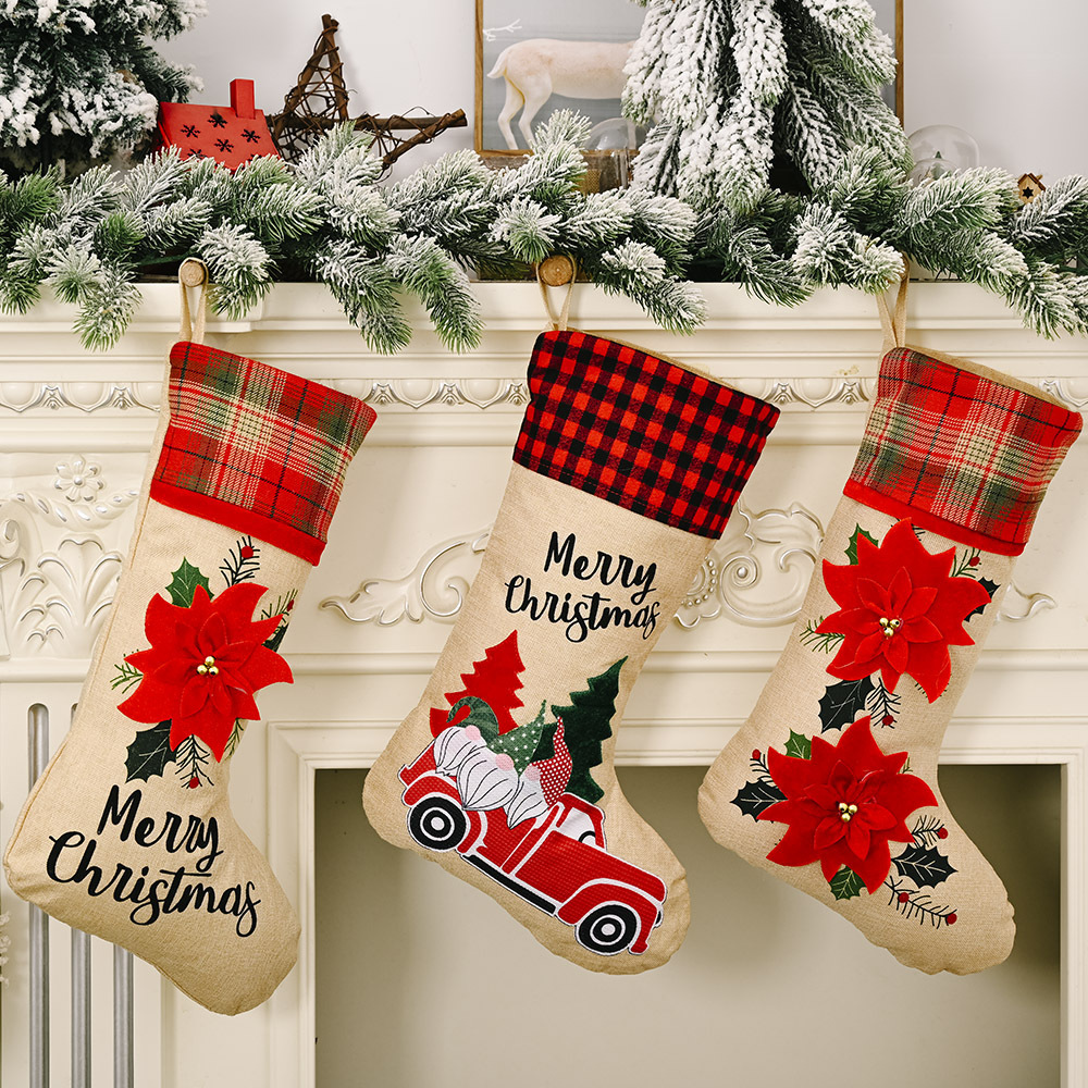 豪貝クリスマス新作創意クリスマス装飾用品大紅花麻布クリスマス靴下森自動車老人靴下