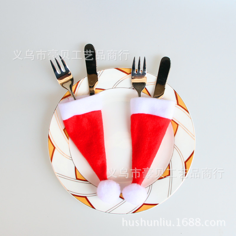 豪貝の新しいクリスマスの帽子のクリスマスの帽子のナイフのフォークのセットのクリスマスの食器の装飾品の大きいボールの帽子の卸売り