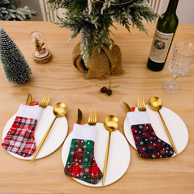 豪貝の新型クリスマス装飾用品の格子の雪の刀のフォークはクリスマスの靴下のミニクリスマスの靴下のプレゼントの袋をカバーします。
