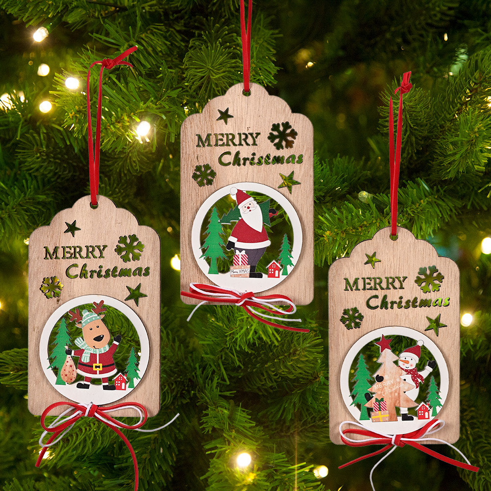国境を越えた新製品クリスマス装飾クリスマス木製透かし彫り蝶ネクタイクリスマスツリー木製ストラップシーン装飾