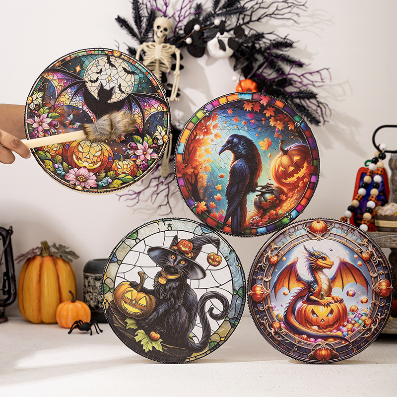 豪貝のハロウィンの装飾は音楽の太鼓を叩きます。
