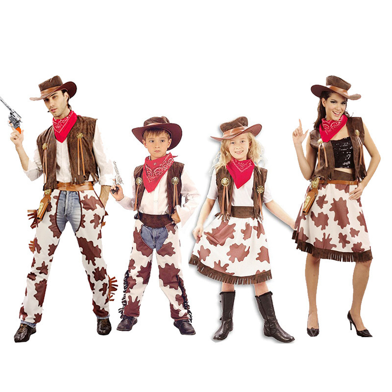 男性と女性のデニム服クリスマス子供用デニム服大人用西部デニム服セクシーなカウボーイハット