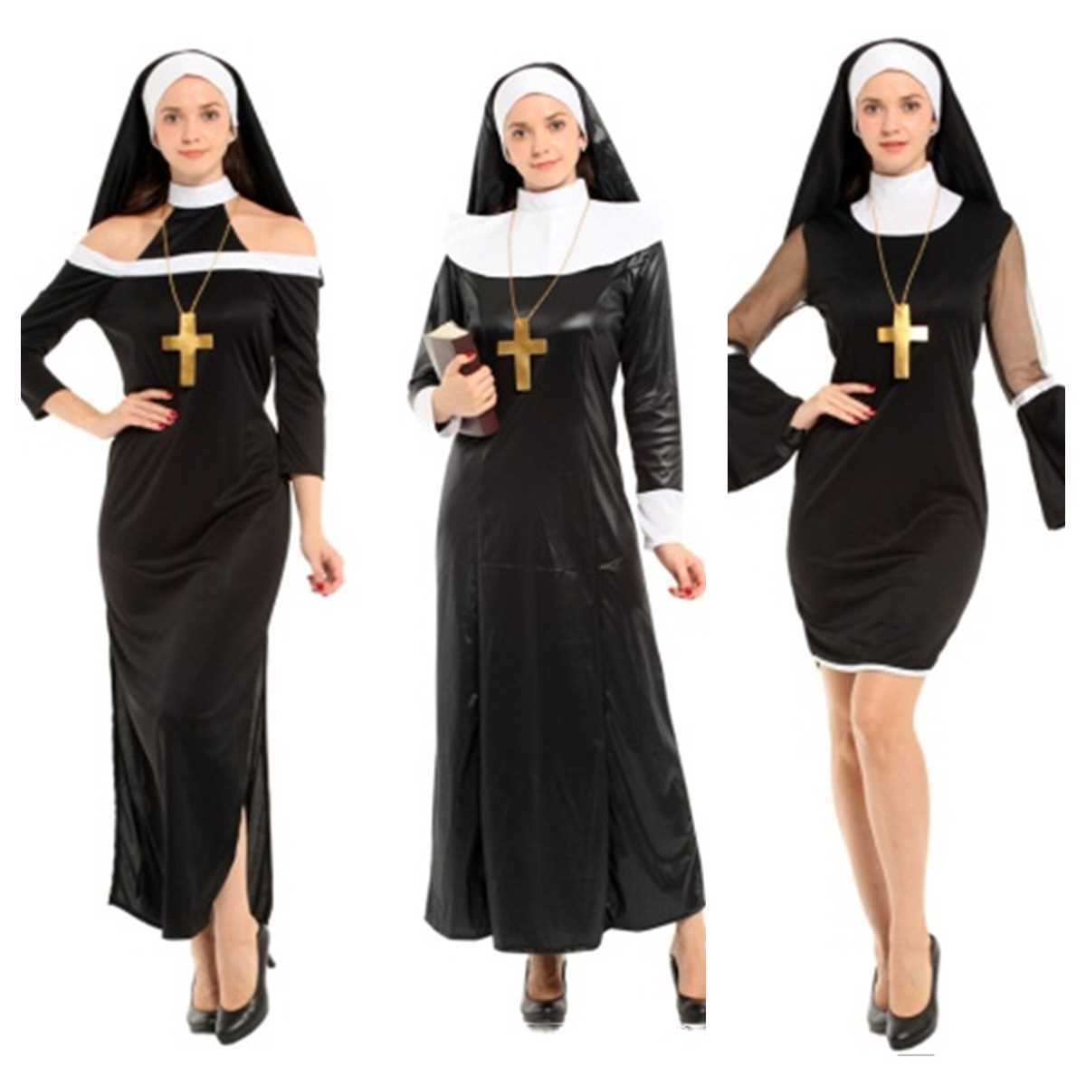 ハロウィーン成人修道女服Cos化粧舞踏会女性牧師聖母マリア衣装W-0313