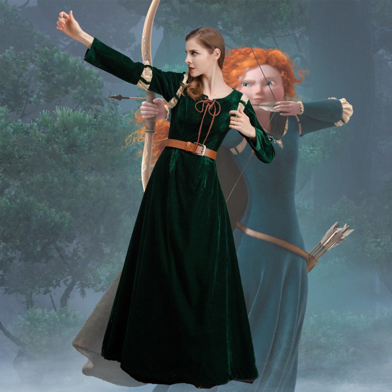 ハロウィーン衣装勇敢伝説キャラクターメリンダキャラクターコスプレ衣装女性グリーン宮廷ロングスカート