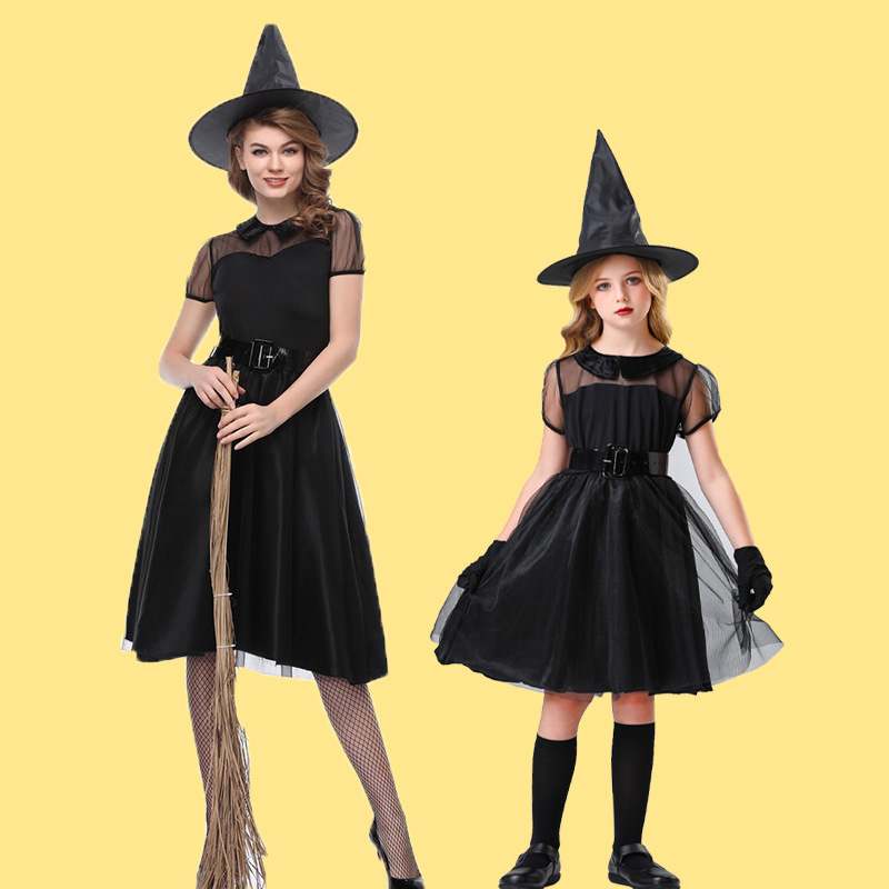 ハロウィーン子供衣装魔女演出ワンピース巫婆コスプレホラー衣装吸血鬼親子飾り