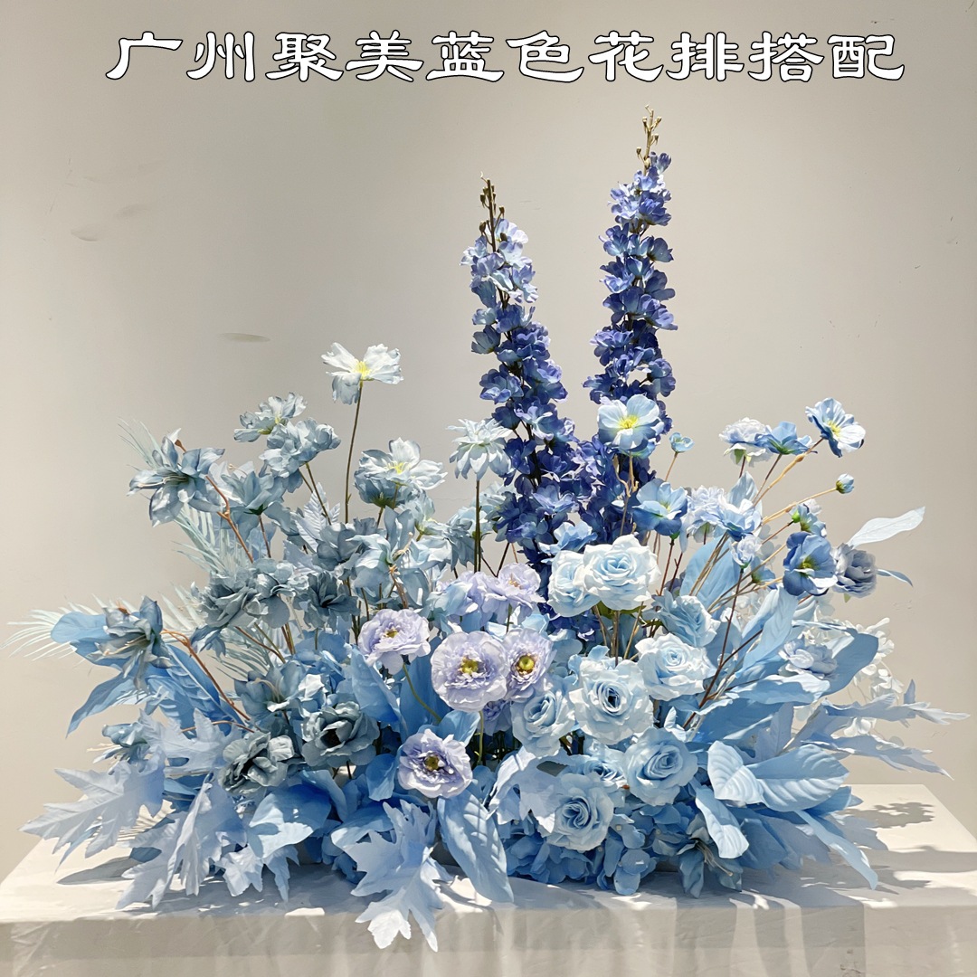 外国貿易の青い道路の花の列のシミュレーションの花のメーカーの特価の青い結婚の道は背景を導いて造花の卸売りを飾ります。