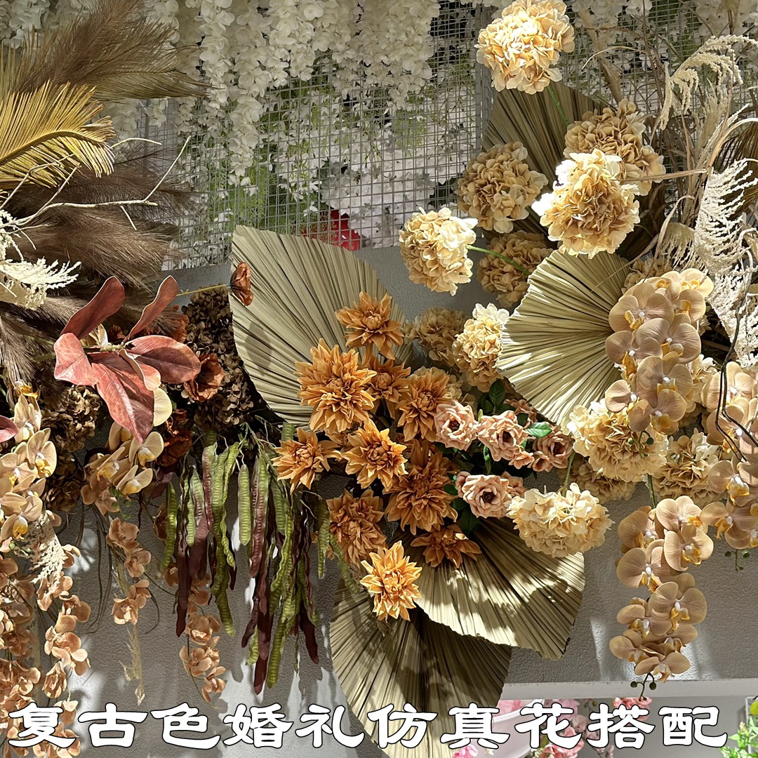 新しい秋色の結婚祝いのシミュレーション花の卸売りのレトロなカレーの色は寂しい風の結婚式の背景の道引の装飾の造花の卸売りです。
