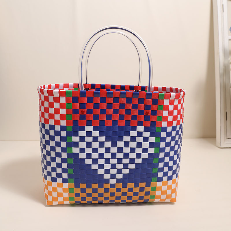 メーカー卸売り愛のあるプラスチックの編み物バッグ大容量の手で野菜バスケットを持って高級感のあるハンドバッグを持っています。