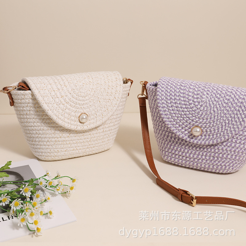 メーカー直販シングル肩綿糸編みバッグ新型純色シングル肩女性バッグカジュアル脇下バッグリゾート風ビーチバッグ