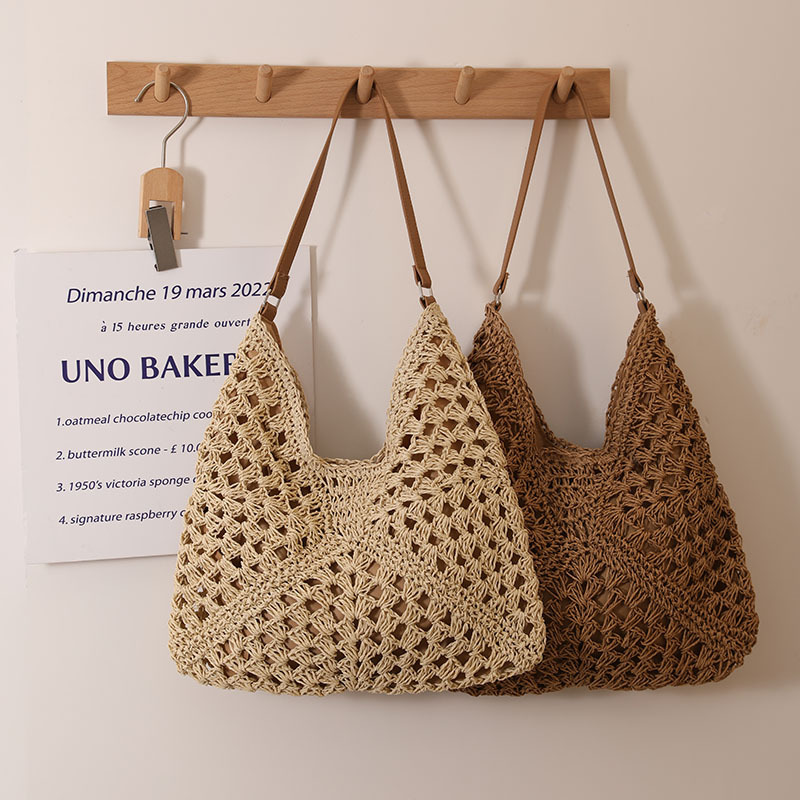 フランスの大容量シングル肩の草編みバッグ