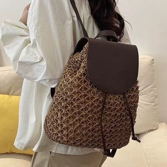 2024 新しい夏の日本と韓国のシンプルなストローバッグビーチバッグ多用途籐ストローバッグ織バッグ女性のポータブル籐バッグ