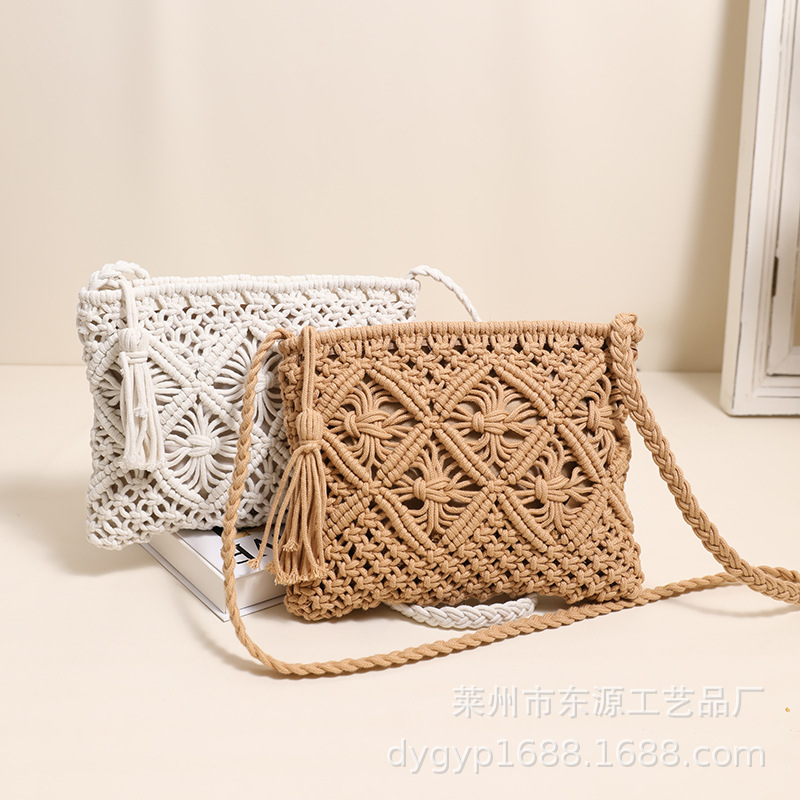 韓国の透かし彫りの綿の糸の手作りの編み物の包みchi風の気質のシングル肩の手提げの草の編みの包みの海辺の休暇のビーチの包み