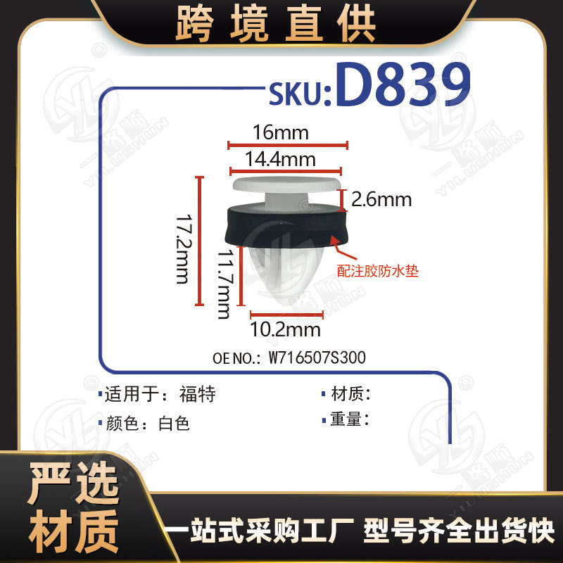 鑫億達製のクリップは、フォード車の部品、ドアパネル、内装パネルの内張り固定用ナイロン製クリップD839に適しています。