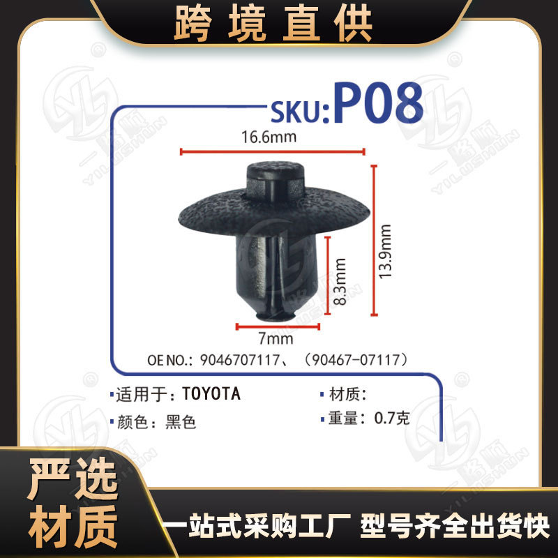 Oe: 9046707117 (90467-07117) 車のカバー水箱カバーのガイド板は心のクリップを通してp 08を掛けます。