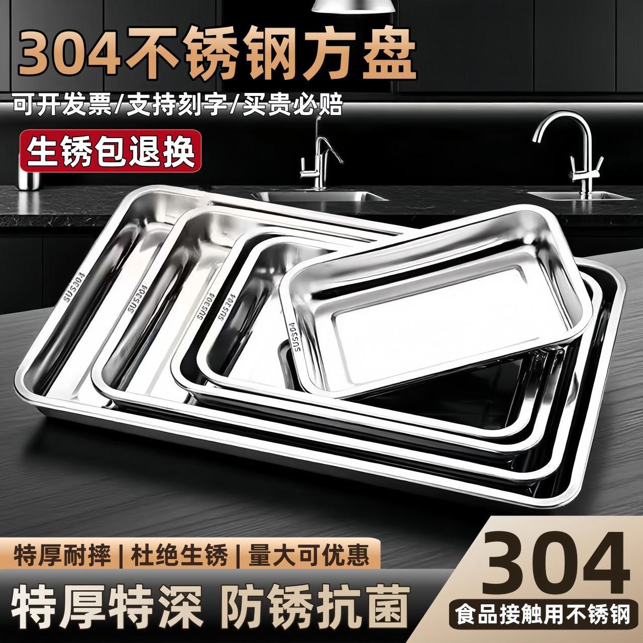 特厚ステンレス長方形皿トレー多機能角皿業務用屋台焼き皿餃子皿凉菜皿