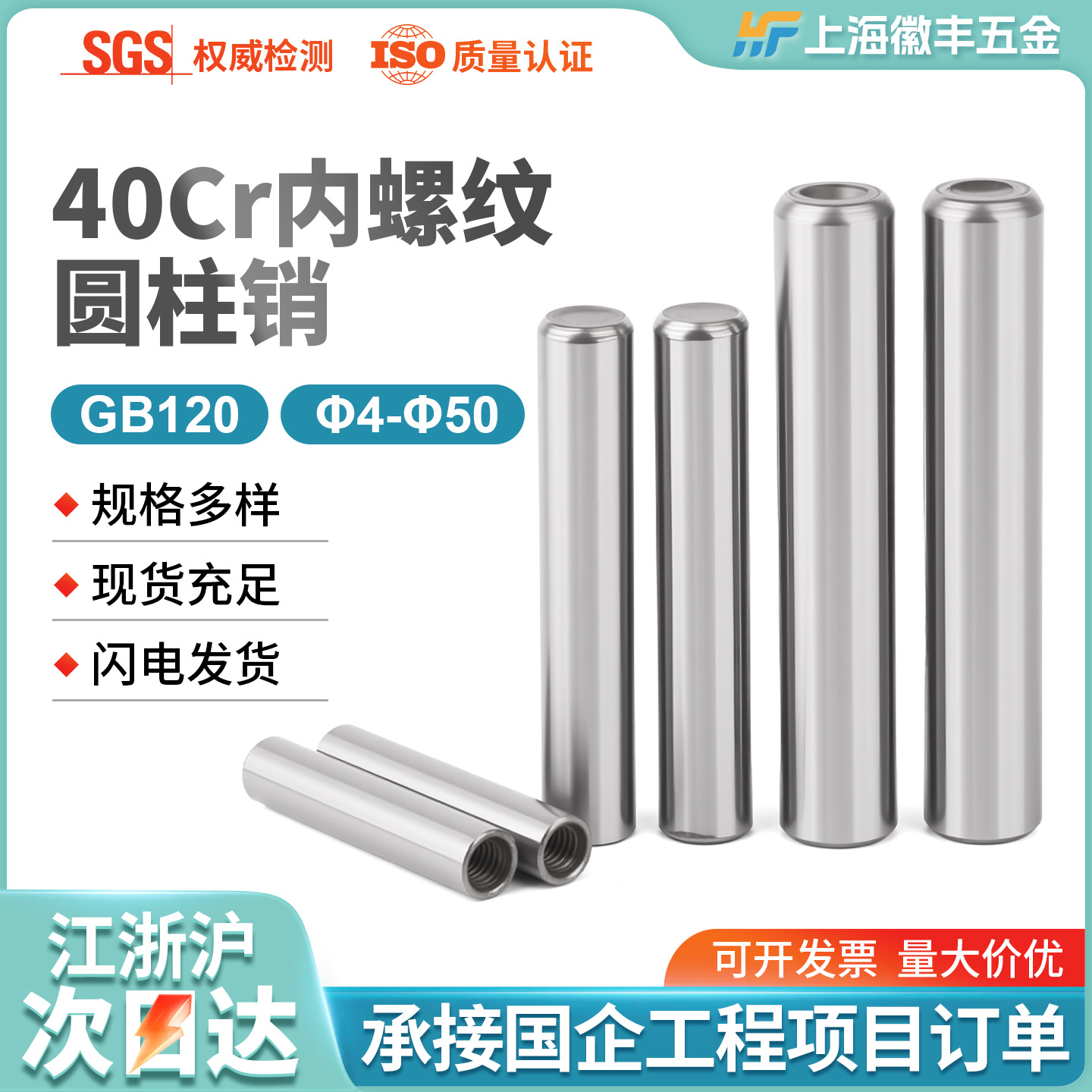 内ネジ円筒ピン 硬化焼入れ済み位置決めピン 40CR材質 GB120円筒ピンΦ4-Φ20