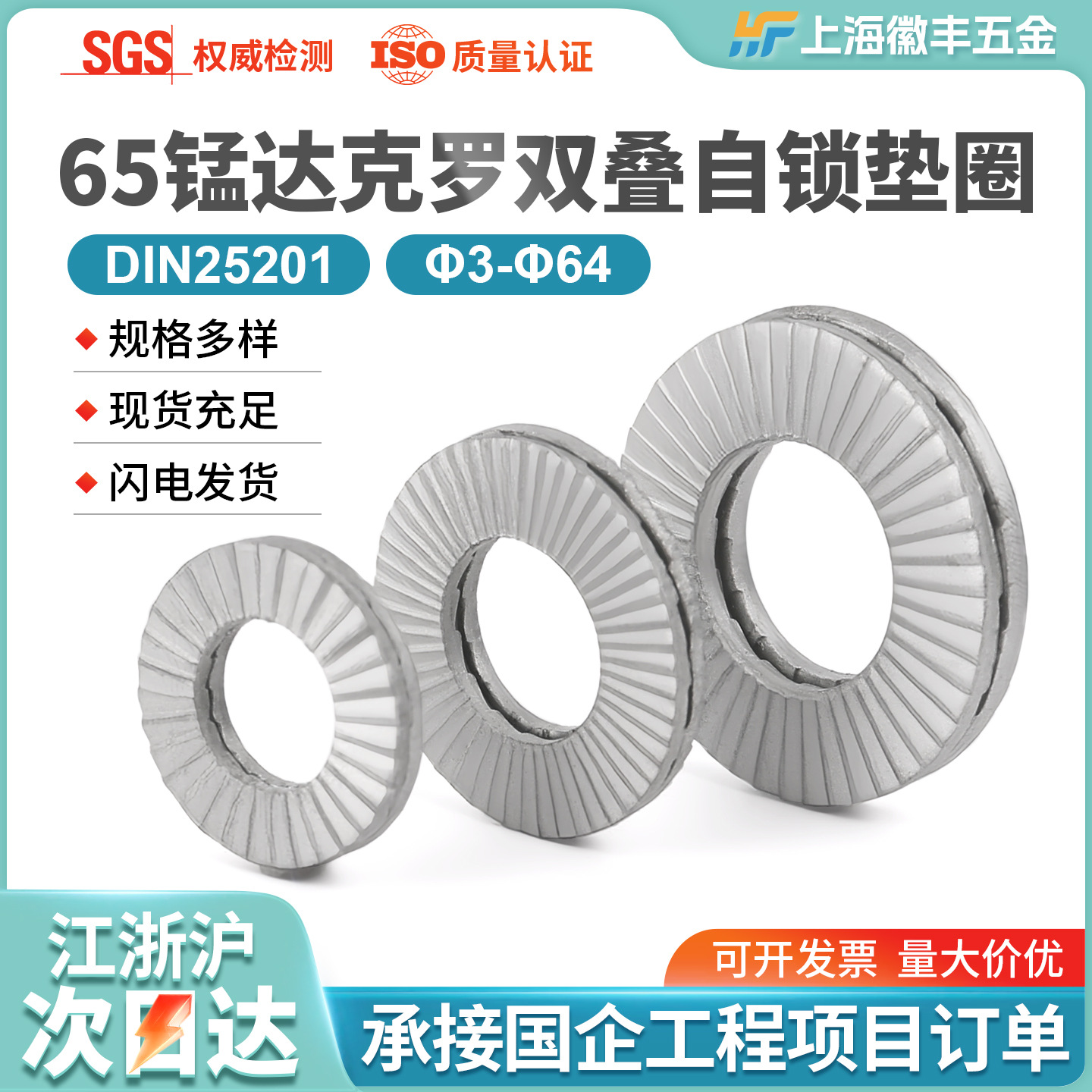 ダクロ65強力二重自締ワッシャーDIN25201緩み止めワッシャー防振ワッシャーΦ3-Φ64