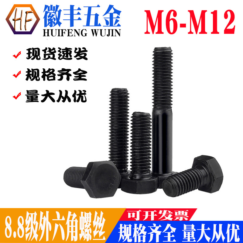 メーカー直販8.8級黒外六角ネジ炭素鋼高強度外六角ネジm6m8m10/m 12