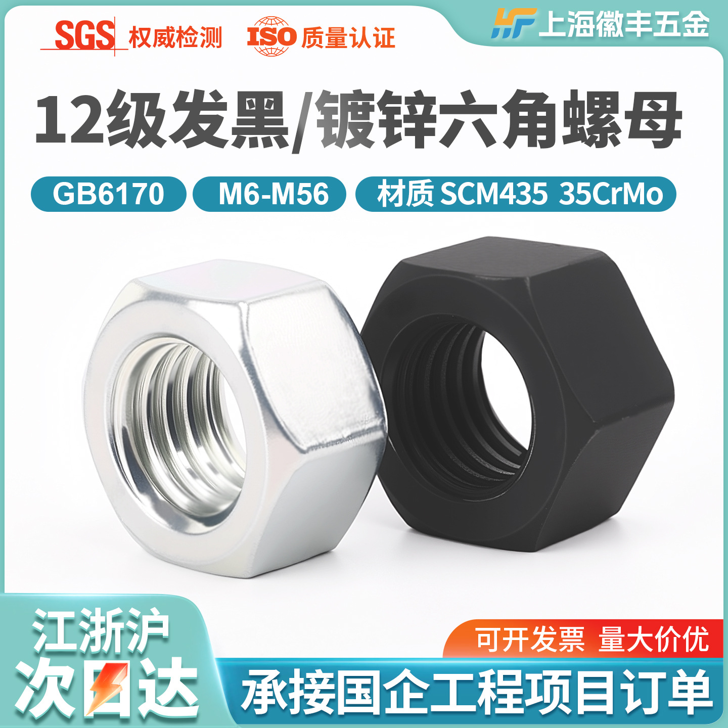 12.9級高強度黒染め亜鉛メッキ六角ナット GB6170 ナット M6-M56