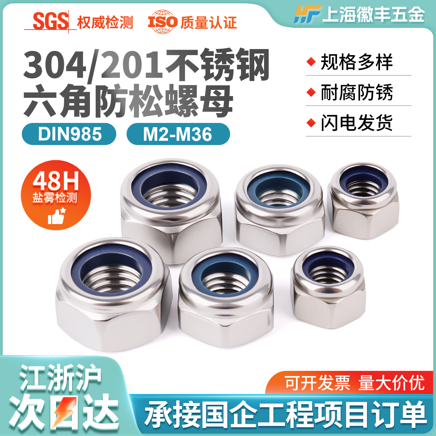 304/201ステンレス鋼六角滑り止めナイロンロックナットDIN985ナットM2-M36