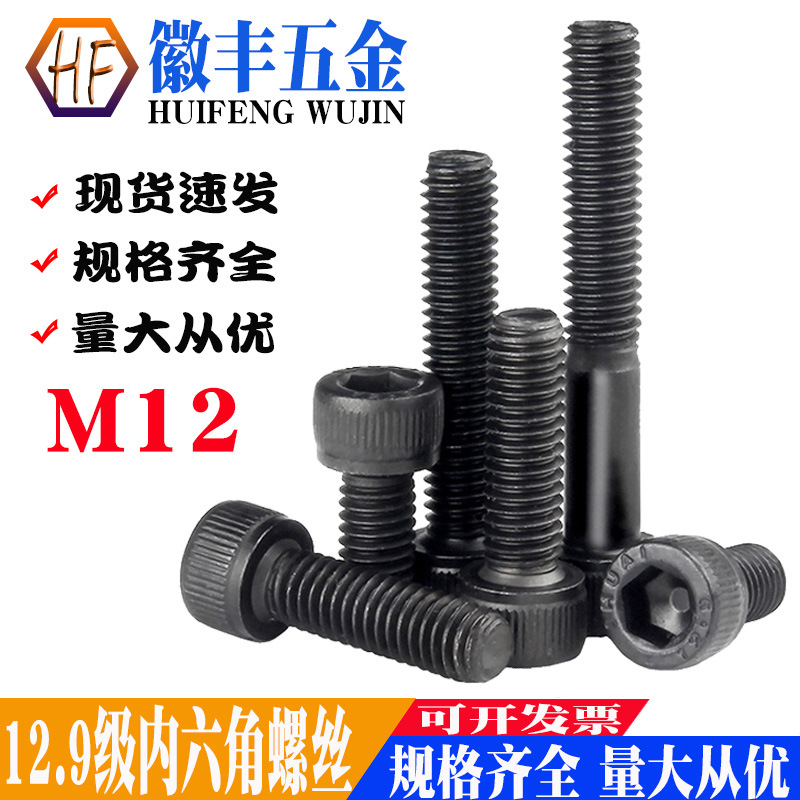 12.9級高強度六角穴付きねじdin912発黒円筒頭カップボルト12*30*35*40