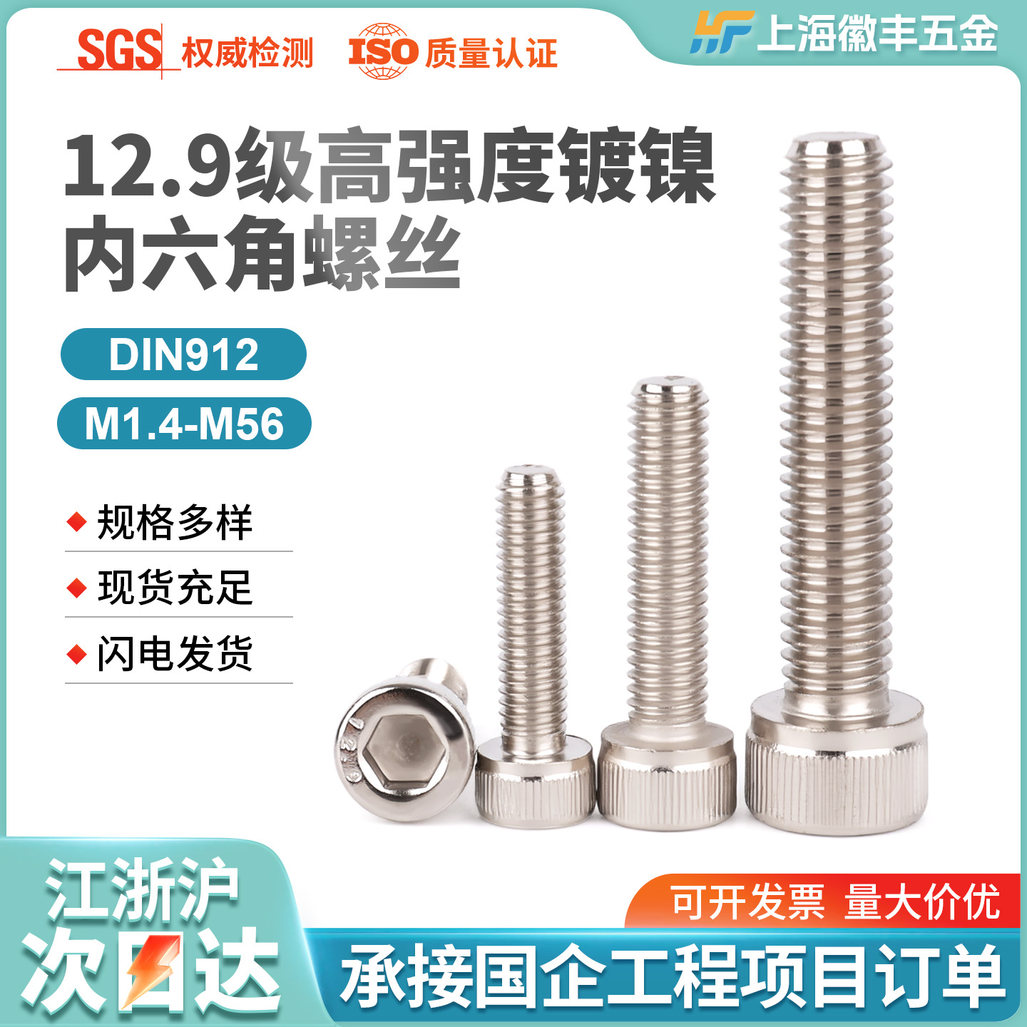 12.9級高強度ニッケルメッキ円筒頭皿頭六角穴付きネジDIN912ボルトM1.4-M8