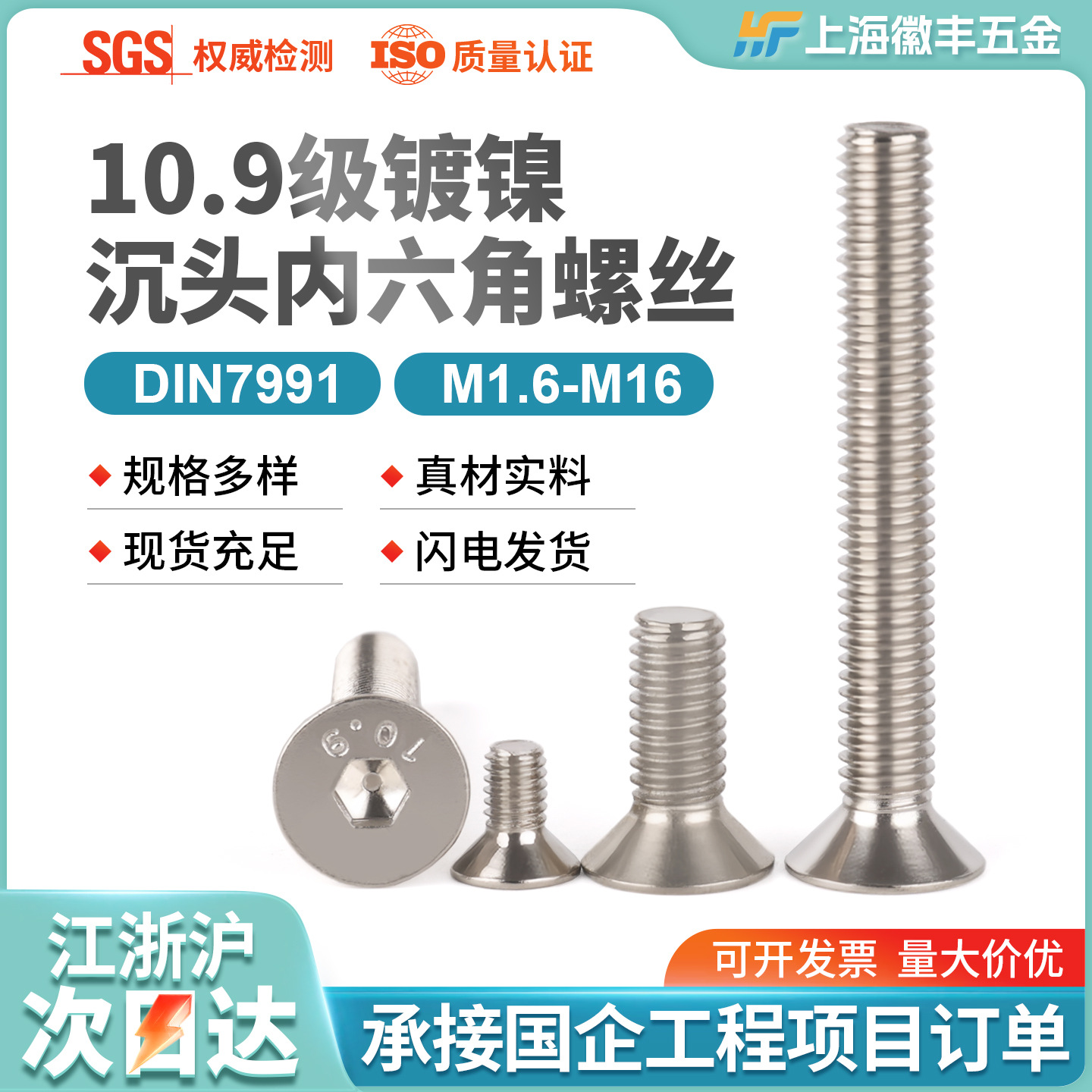 10.9級高強度ニッケルメッキ皿頭六角穴付きボルト DIN7991 ボルト M2-M16