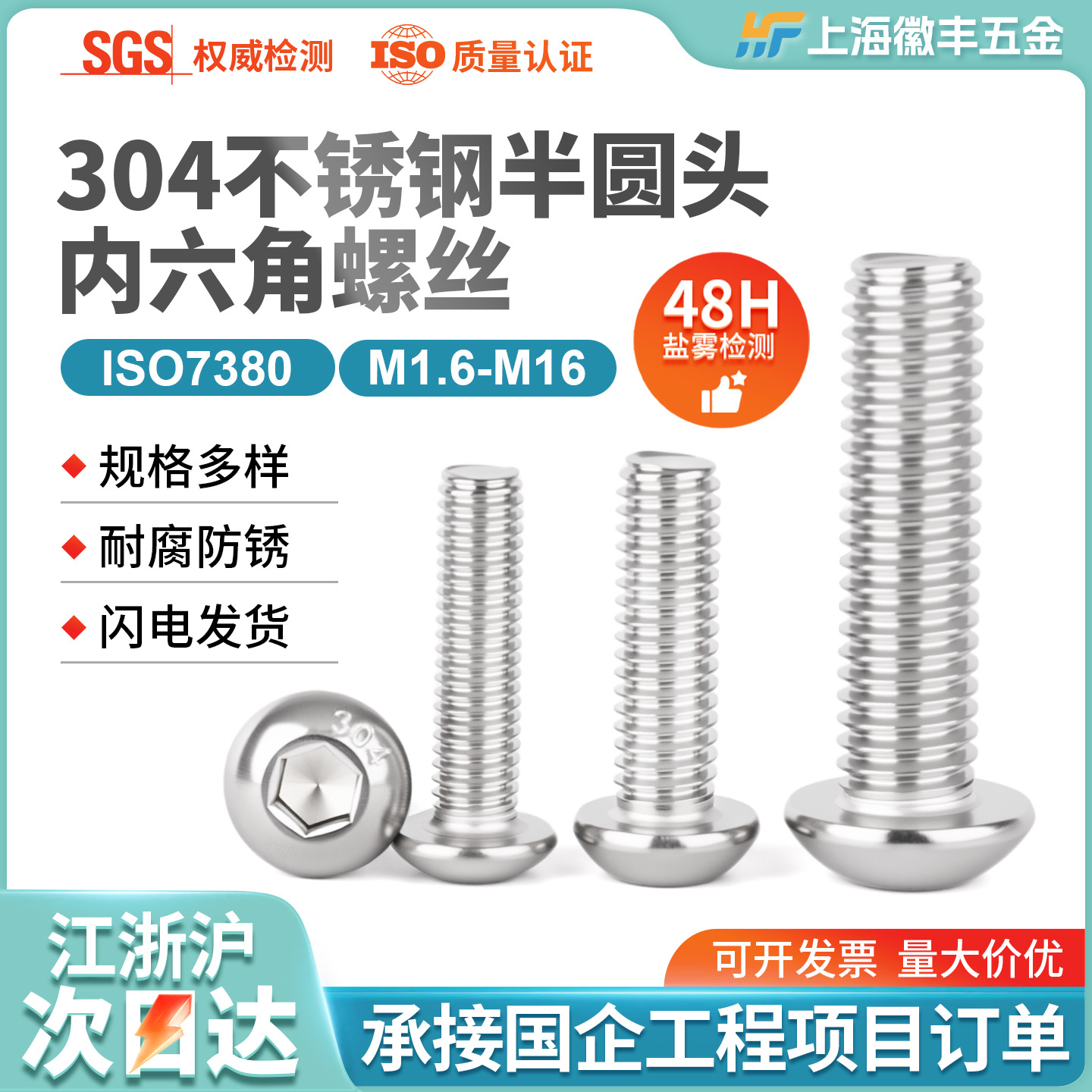 304ステンレス鋼丸頭半円頭マッシュルームヘッド皿頭六角穴付きネジボルトM1.6-M8
