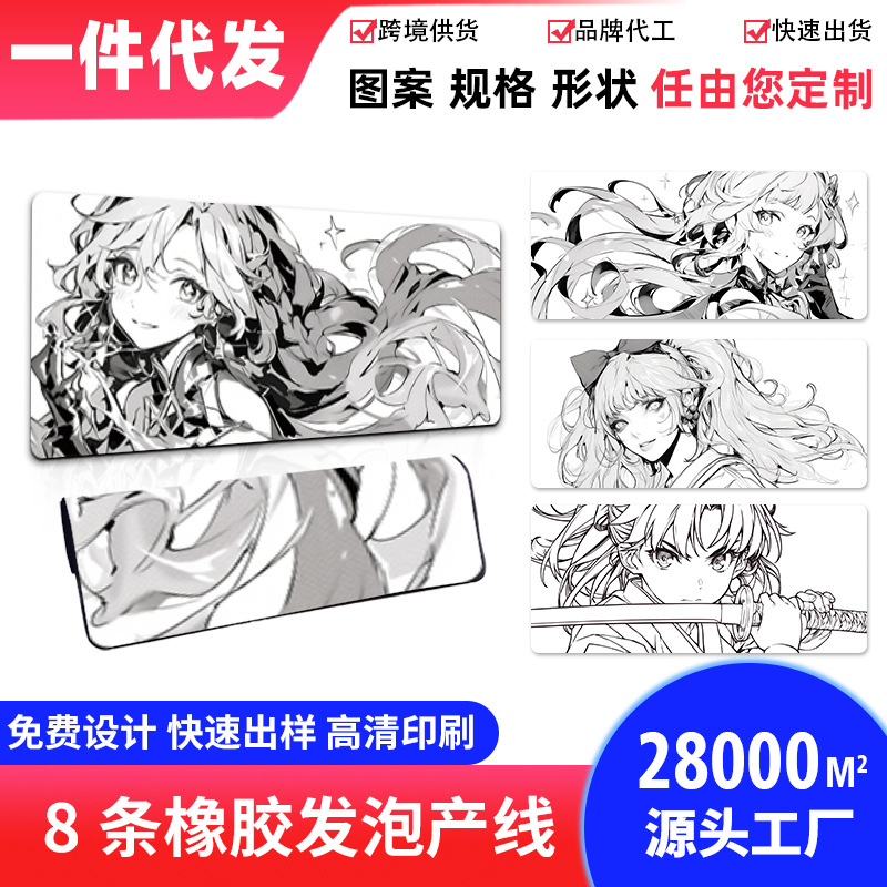 二次元アニメーション線画マウスパッド大型滑り止め厚みのあるエッジデスクパッドカスタマイズされたドロップシッピング