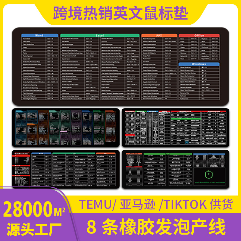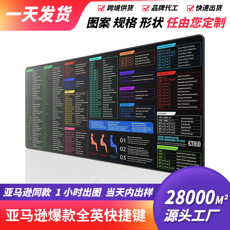 Excel完全英語ショートカットキーマウスパッドAmazonコンピュータオフィス専用クロスボーダーヨーロッパとアメリカの人気の滑り止めテーブル