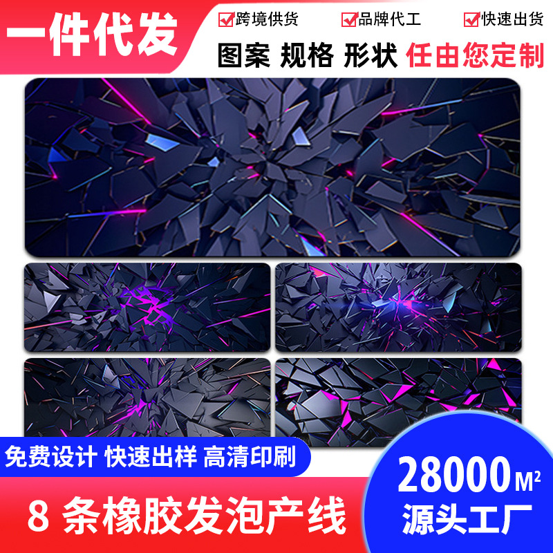 人気のガラス破片マウスパッド、滑り止めと汚れ防止、カスタマイズされたマウスパッド、大型の厚みのあるエッジロックゲームデスクパッド