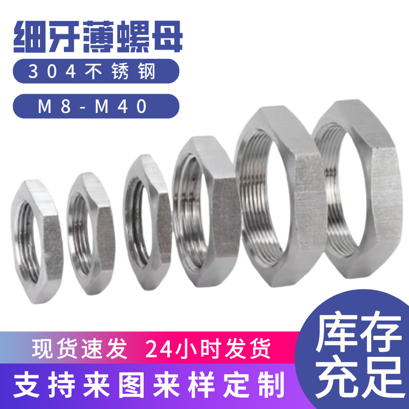 現物304ステンレス製ロックナット薄ナットフラット小並帽公英製六角細歯ナットカスタム