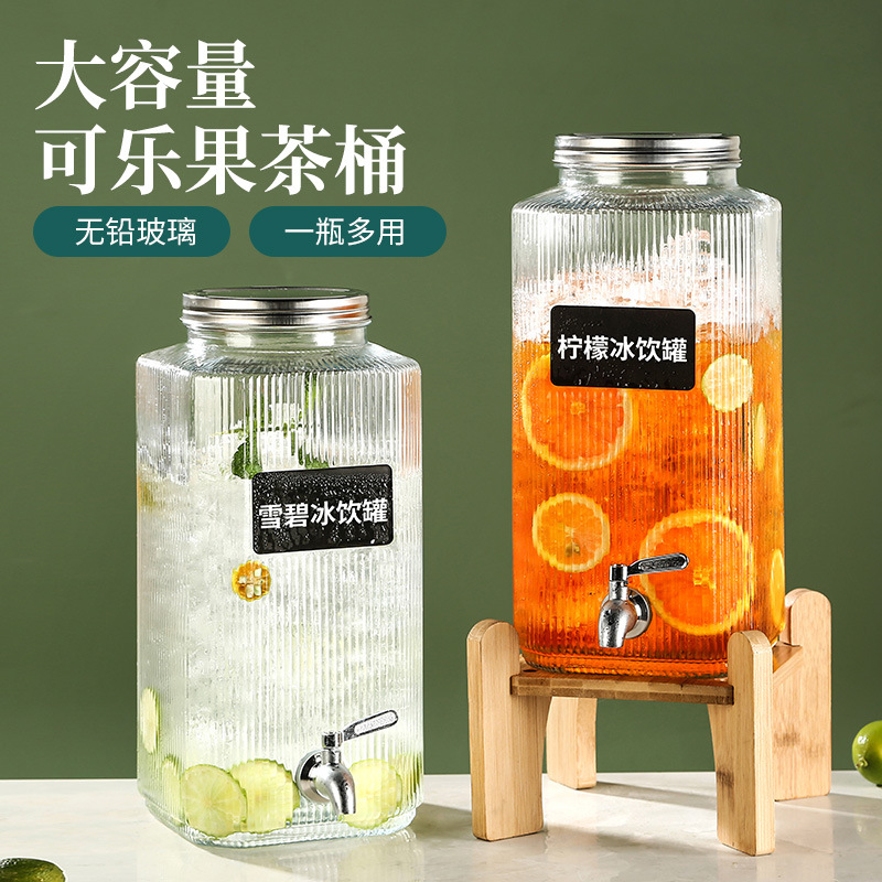 冷たい水筒冷水水筒ガラスジュース桶コーラ飲料桶容器耐高温レモン果物茶桶蛇口付き