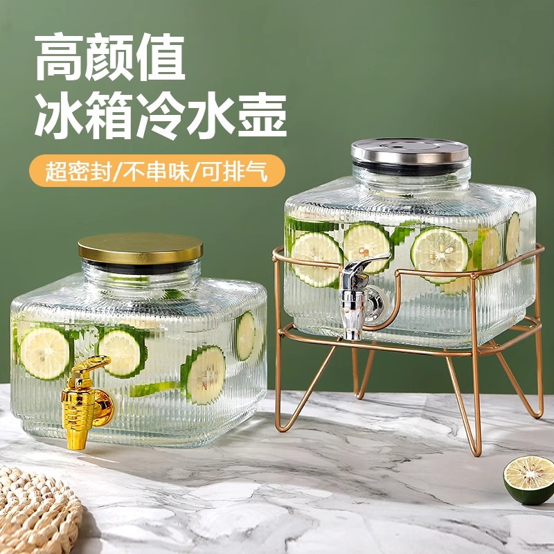 コールドケトルガラス高温耐性増粘大容量クールカップ高価値密封フルーツティーポット飲料バレルコールドケトル