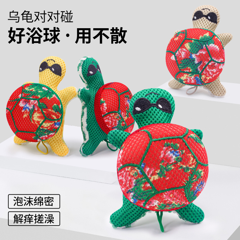 国境を越えた可愛らしい小さなカメのシャワーボール、子供用泡立てバスローブ、お風呂のおもちゃ、崩れない超柔らかいバスフラワーボール