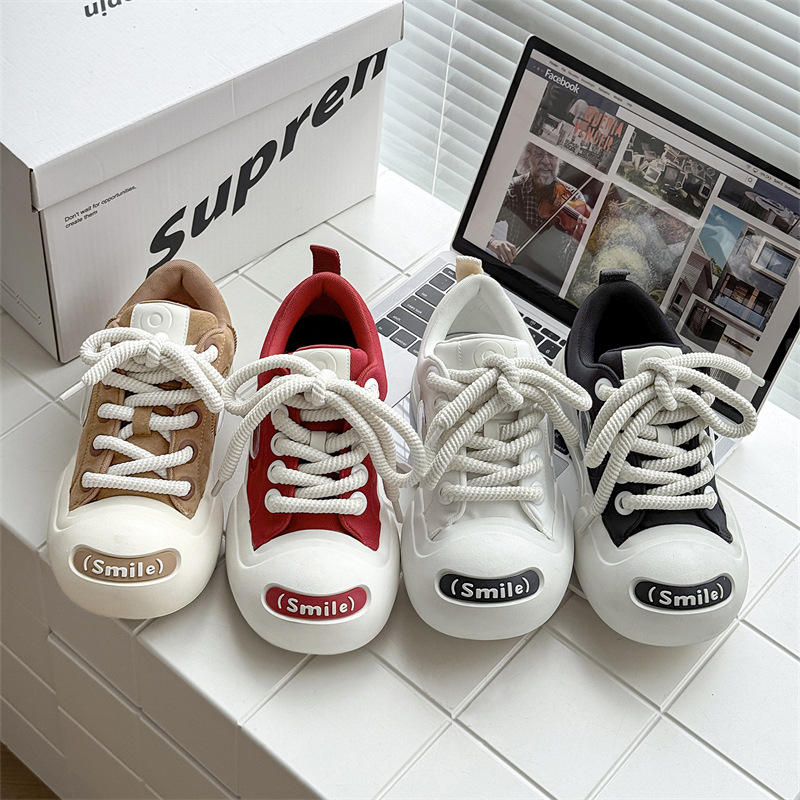 高颜値开口笑板靴2025新型大頭醜萌かわいい白靴対外貿易厚い底カジュアルパン靴