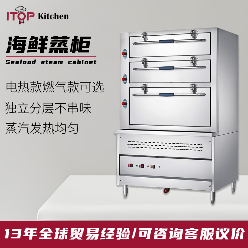 商用ガスタイプ海鮮蒸し器三門循環加熱蒸気多機能ステンレス電気タイプ蒸し器