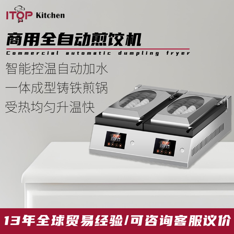 商用全自動餃子焼き機自動注水防焼乾燥焼き鍋貼り焼き機知能シングル二頭焼き餃子焼き機