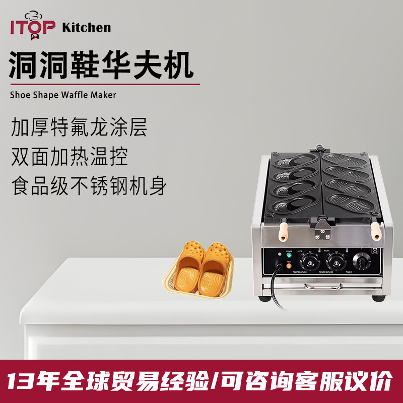 洞靴ワッフル機テフロンコーティングステンレスワッフル機ネット赤露店軽食洞靴トースター