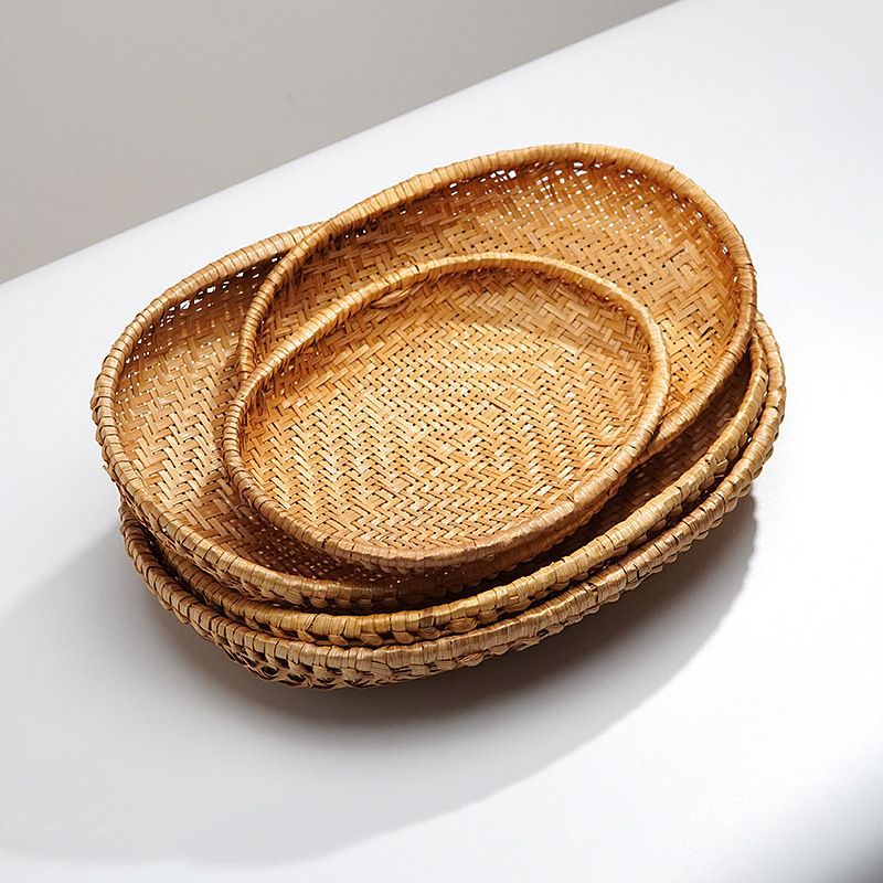 竹編みスモーク楕円かご手作り竹ふるい竹製収納かご干し丸ちりとりフルーツ米とぎかご水切りかご
