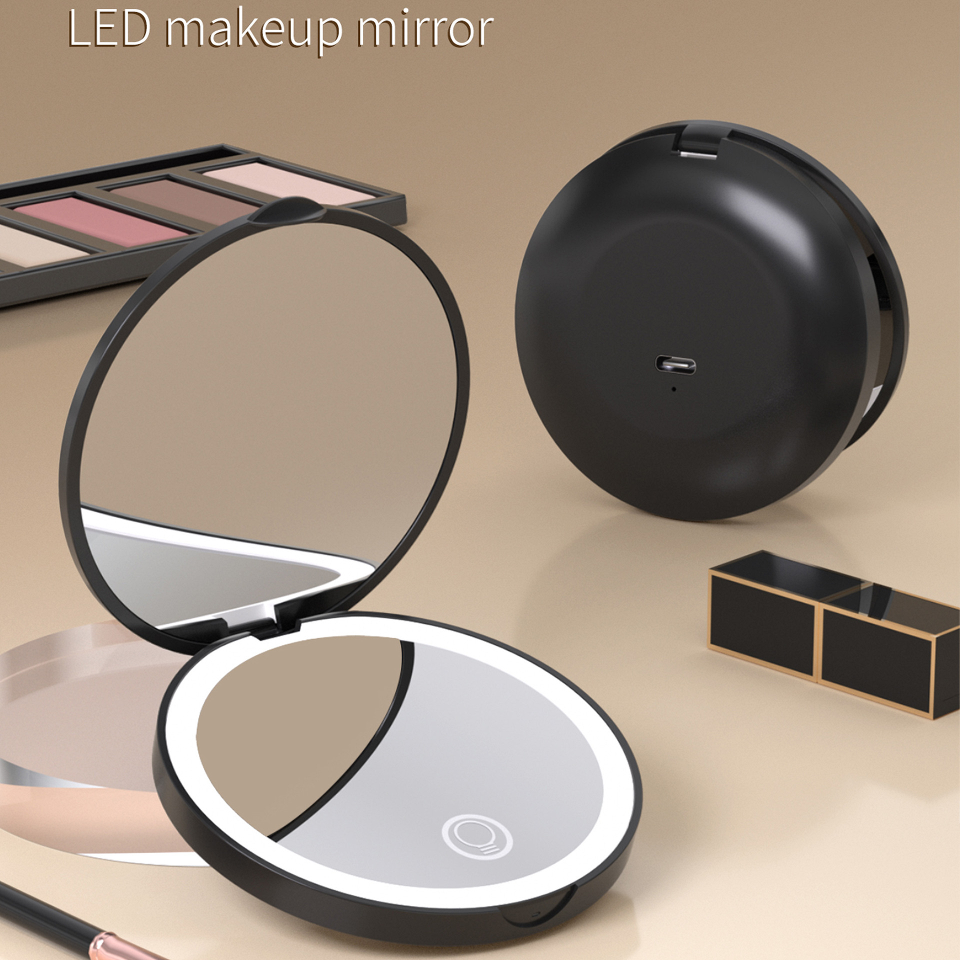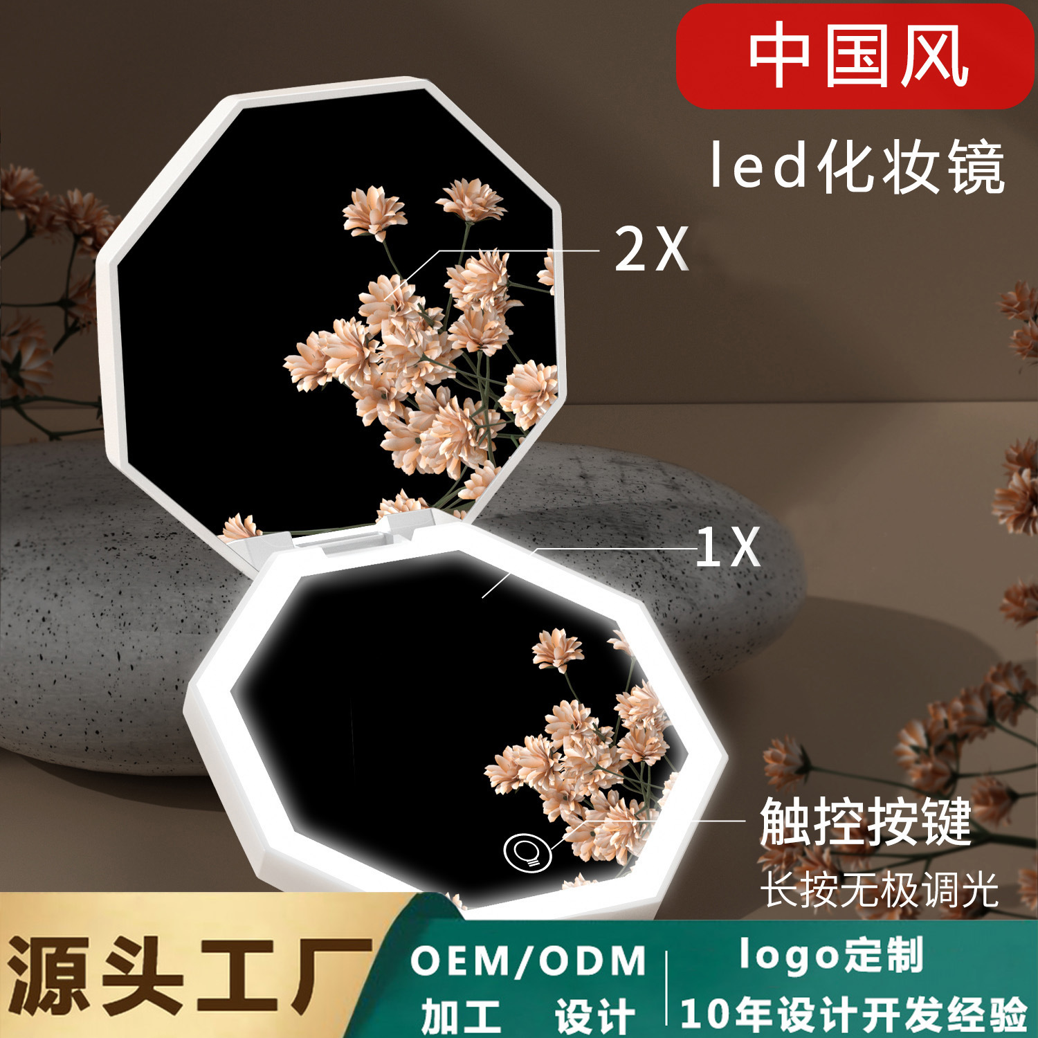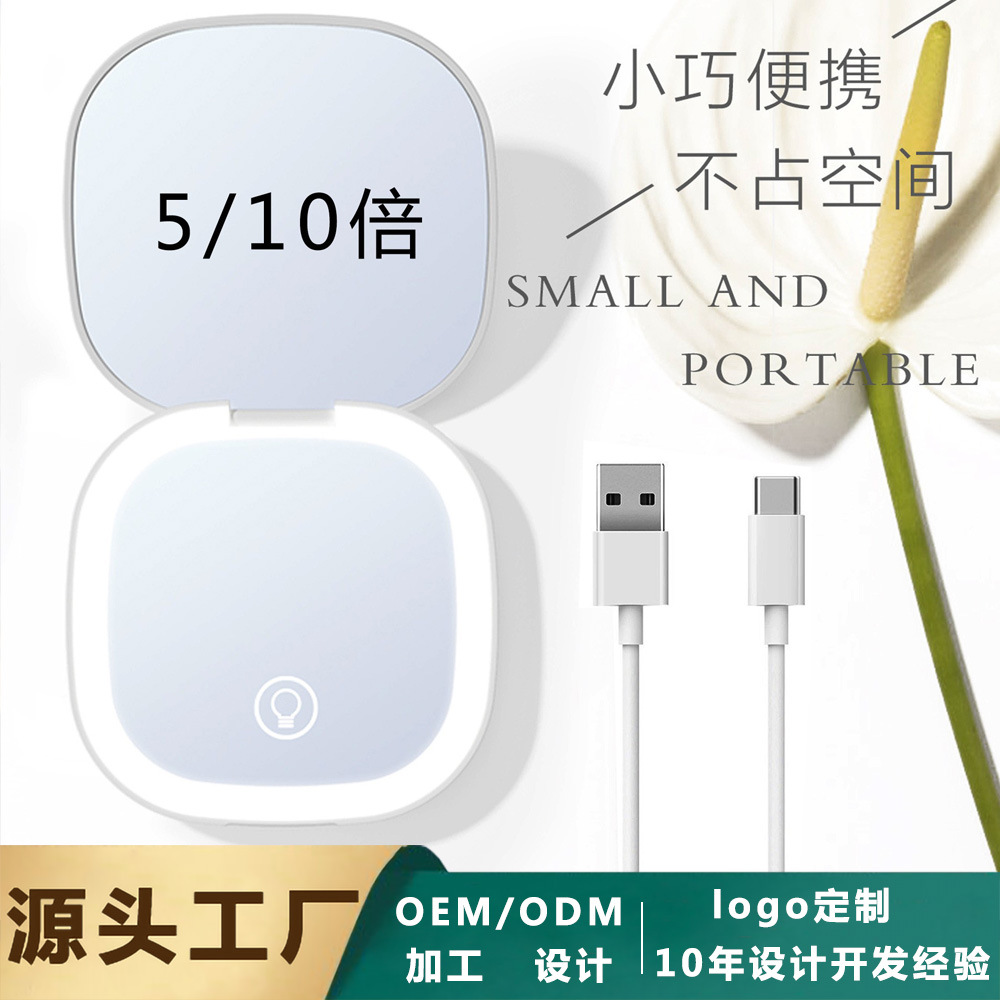 クロスボーダー充電モデルled化粧鏡ギフトロゴ注文アマゾン携帯折り畳みled化粧鏡ランプ付き