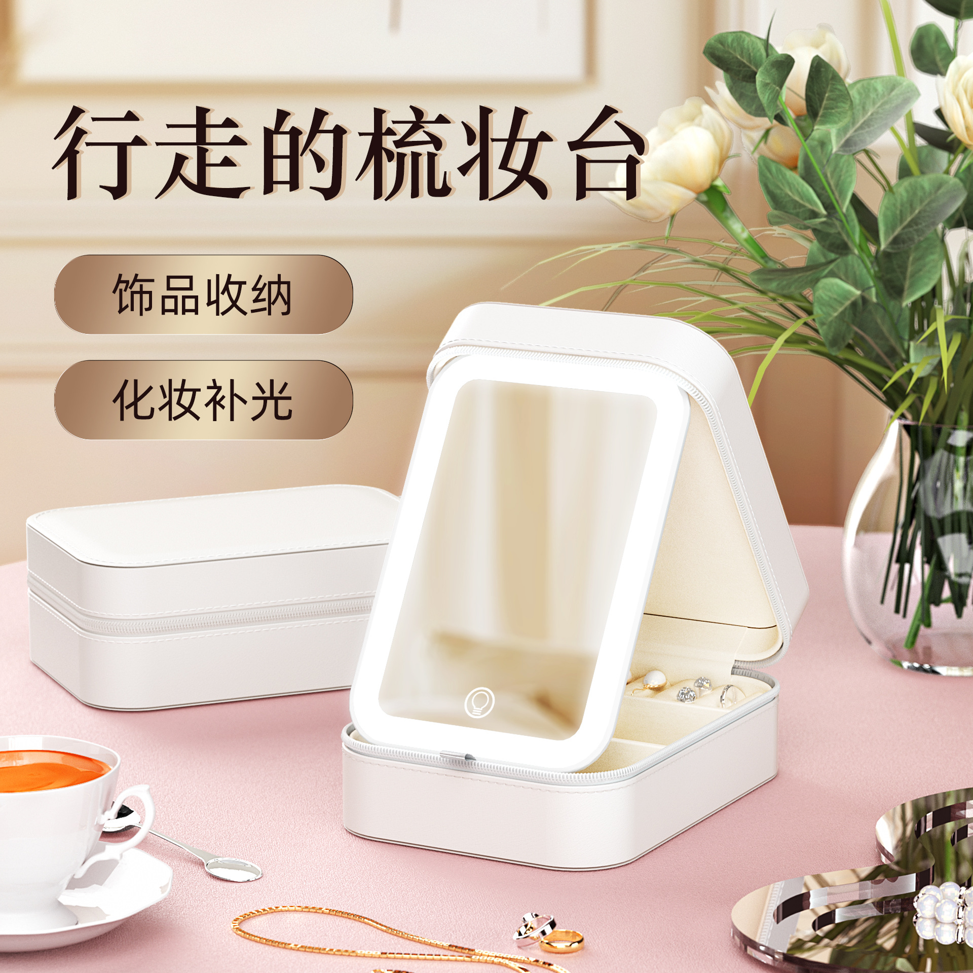 ミニ旅行ポーチミラー付きledライトアマゾンクロスボーダーポータブルライト付き化粧箱