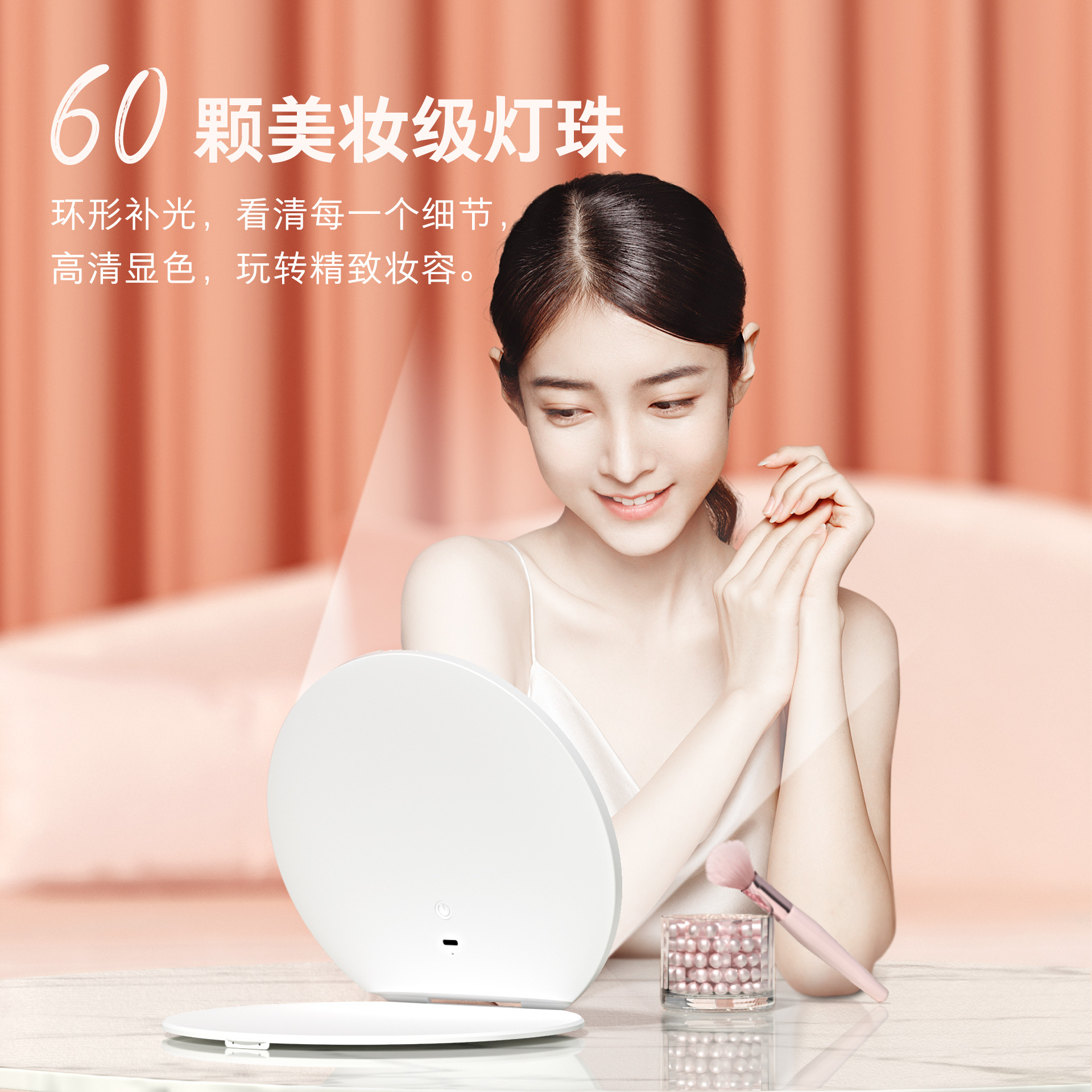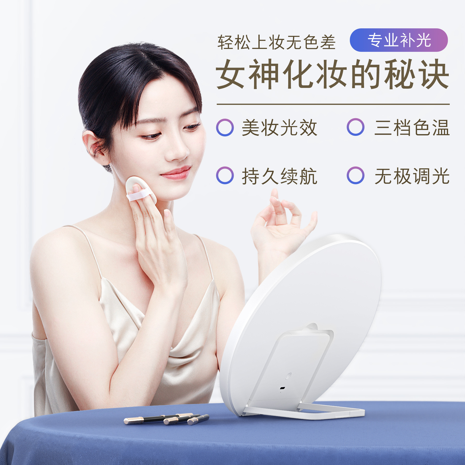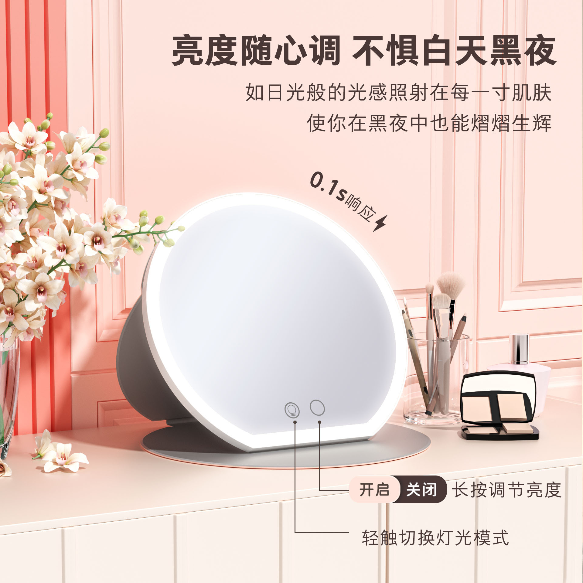 新型円形デスクトップ折り畳み化粧鏡ランプ付きアマゾン私模知能携帯折り畳みled化粧鏡