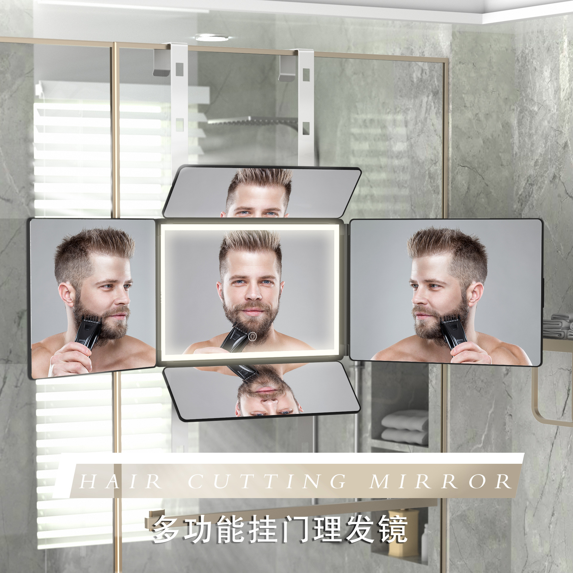 メンズ髭剃りミラー多機能掛けドア理髪鏡伸縮可能三面折りたたみled化粧鏡