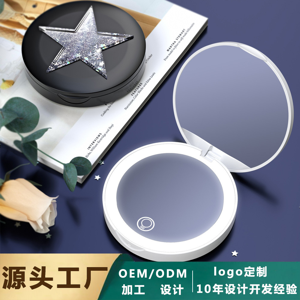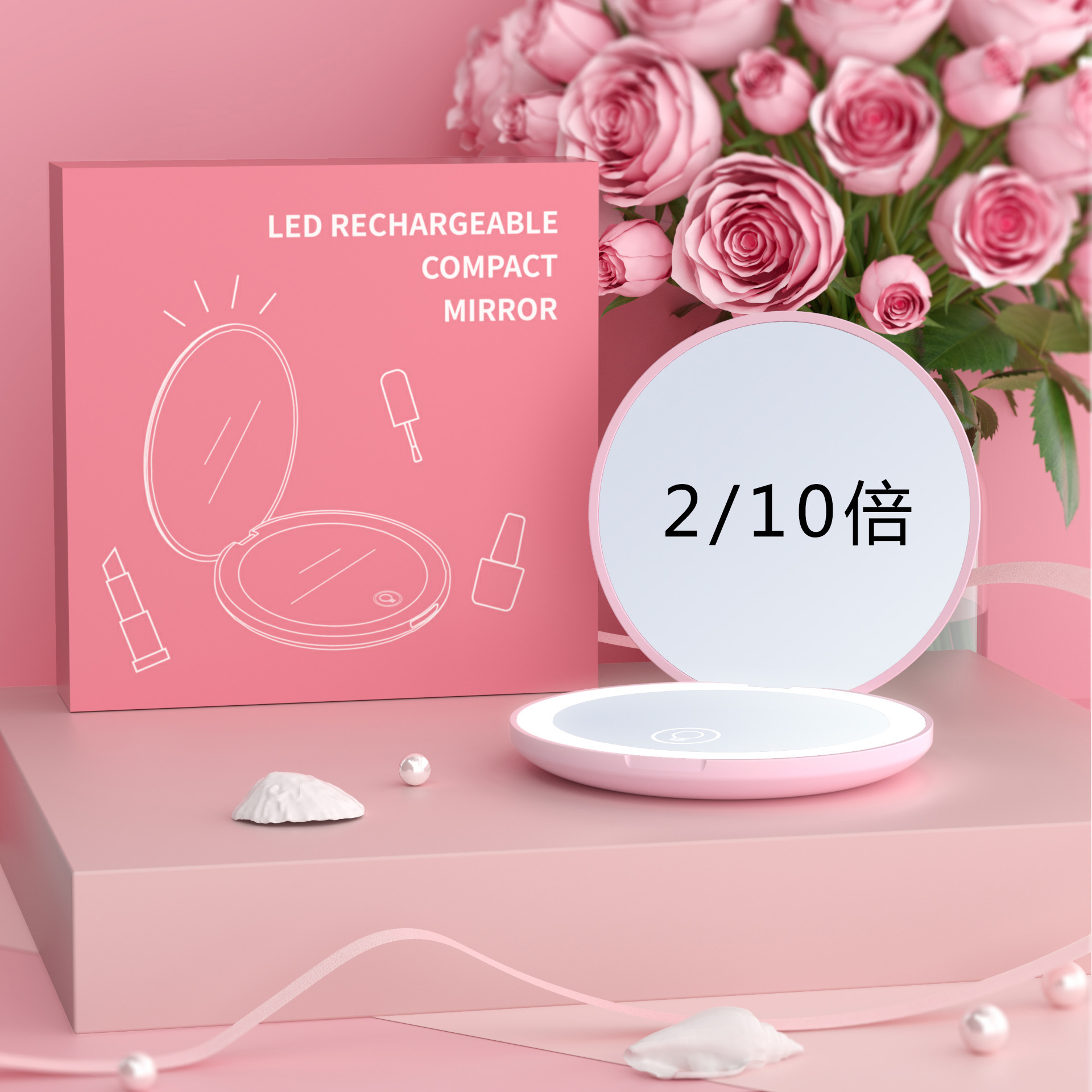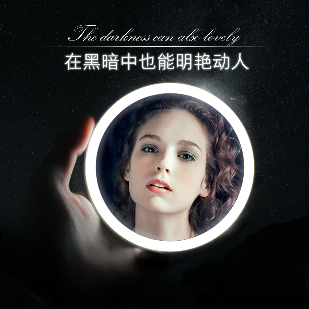 新型アマゾンled化粧鏡女子の祝日プレゼント実用ロゴ携帯led化粧鏡ランプ付き