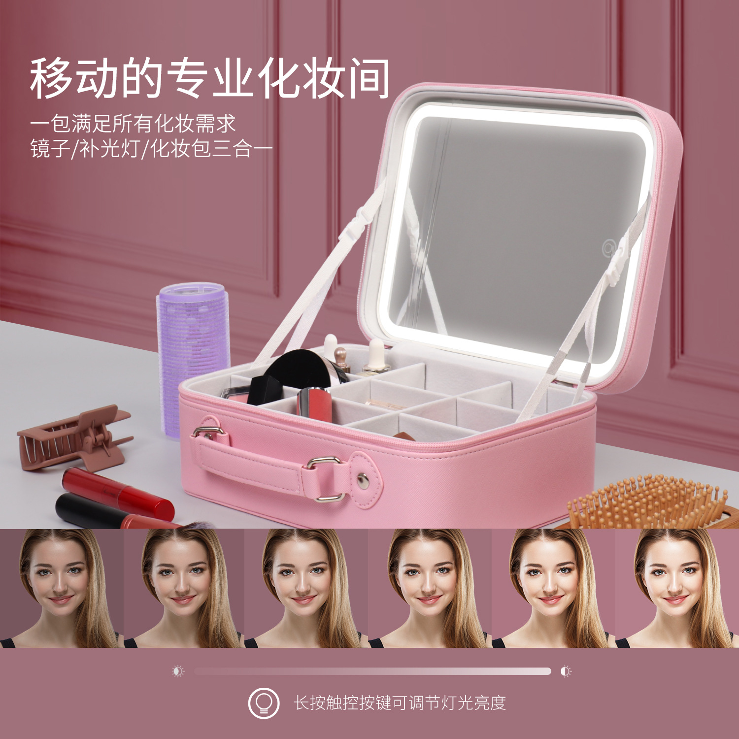 Amazonで人気のミラーとLEDライト付き旅行用化粧品バッグ、ライト付きクロスボーダーポータブル化粧品ケース、化粧鏡