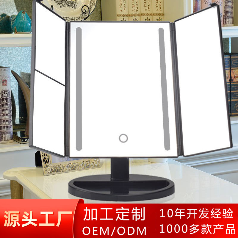 カスタムled化粧鏡2x3拡大ランプ付き化粧鏡デスクトップ三面折り畳みledデスクトップ化粧鏡